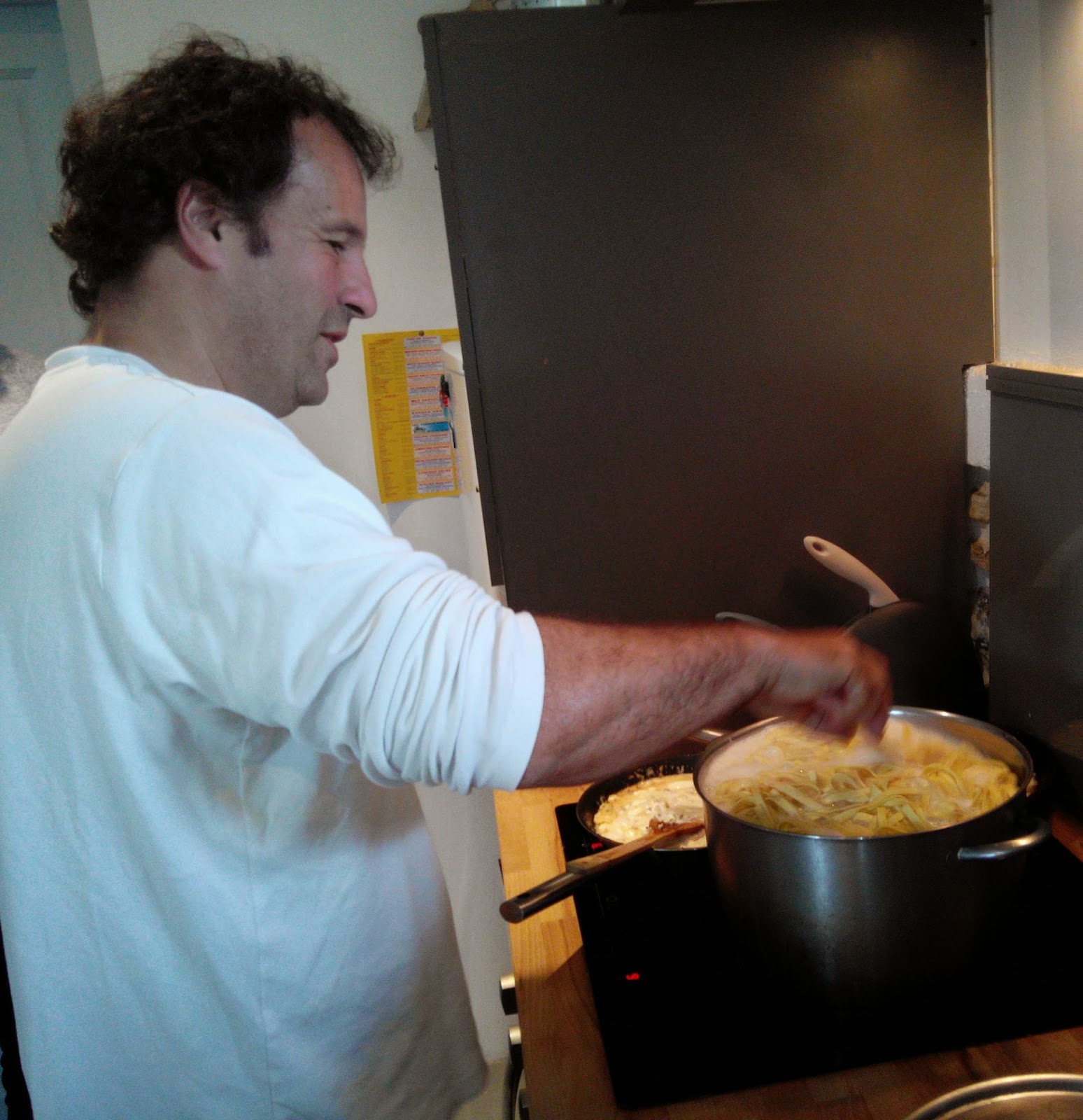 Harold nous a fait des pâtes fraîches au Roquefort, c'est normal, vu que nous faisons nous même du Rock fort...